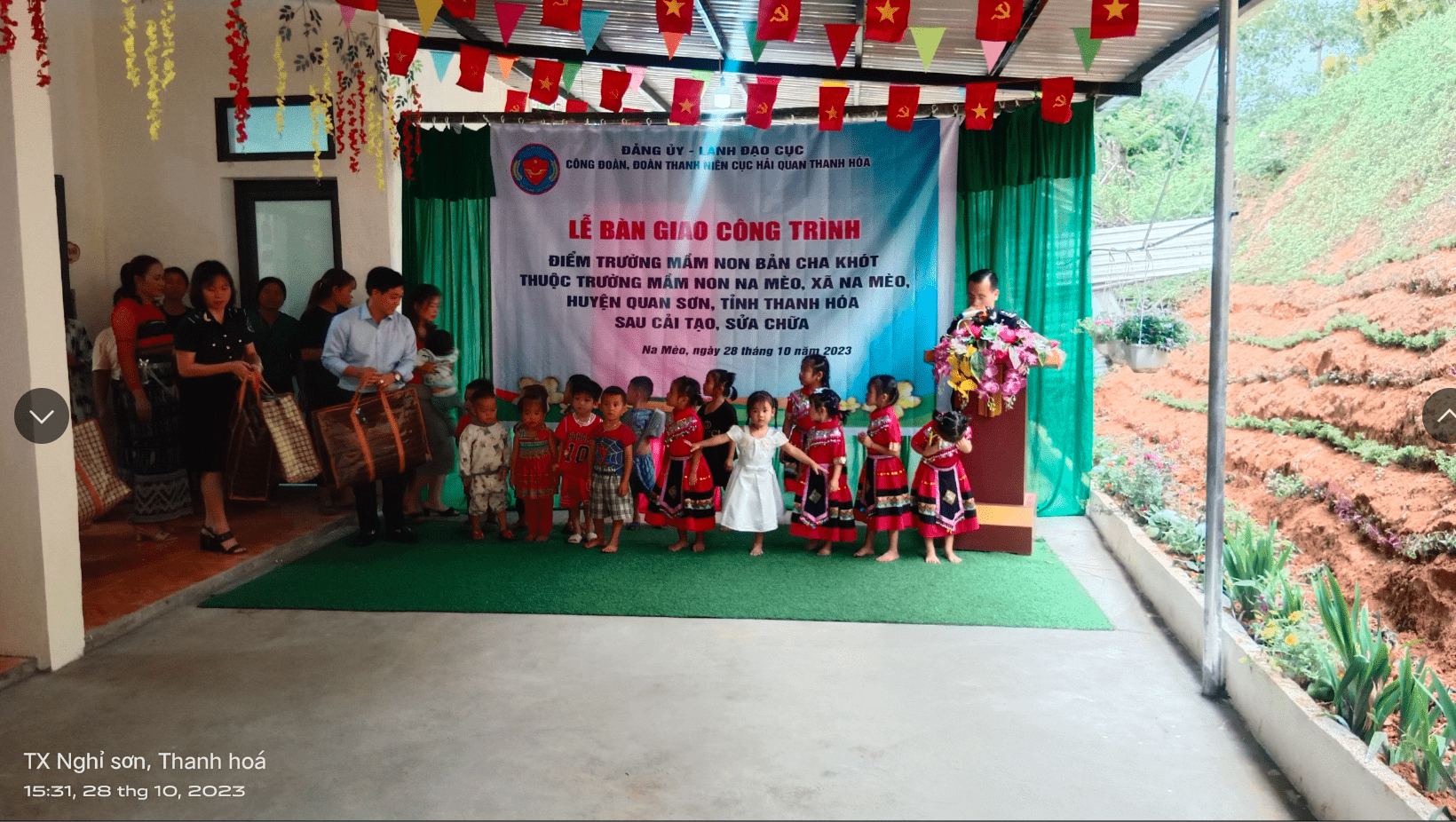 Ngày 28/10/2023, Công ty TNHH Miza Nghi Sơn chung tay cùng Công đoàn Cục Hải quan Thanh Hóa đã phối hợp với chính quyền địa phương xã Na Mèo (Quan Sơn, Thanh Hóa) tổ chức bàn giao công trình điểm trường mầm non Bản Cha Khót, thuộc trường mầm non xã Na Mèo sau cải tạo, sửa chữa.