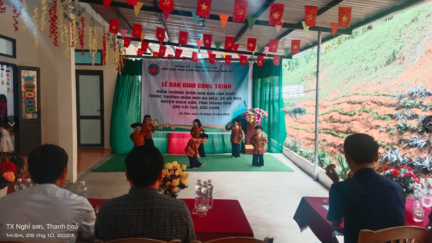 Tham dự buổi lễ bàn giao có đ/c Lê Xuân Huế, Bí thư Đảng ủy, Cục trưởng; Đc Trịnh Quang Huy, Phó Cục trưởng, Chủ tịch Công đoàn Cục; đại diện các tổ công đoàn, đoàn thanh niên của Cục Hải quan tỉnh Thanh Hóa; đại diện các doanh nghiệp tham gia ủng hộ xây dựng, sửa chữa điểm trường; đại diện lãnh đạo xã Na Mèo và trường mầm non Cha Khót. Công ty TNHH Miza Nghi Sơn đã chung tay đóng góp 50.000.000 đồng.