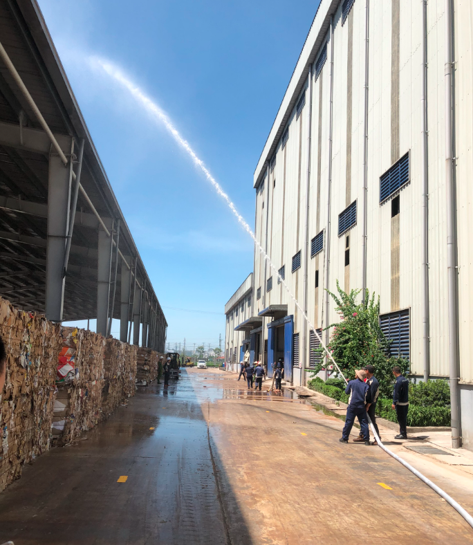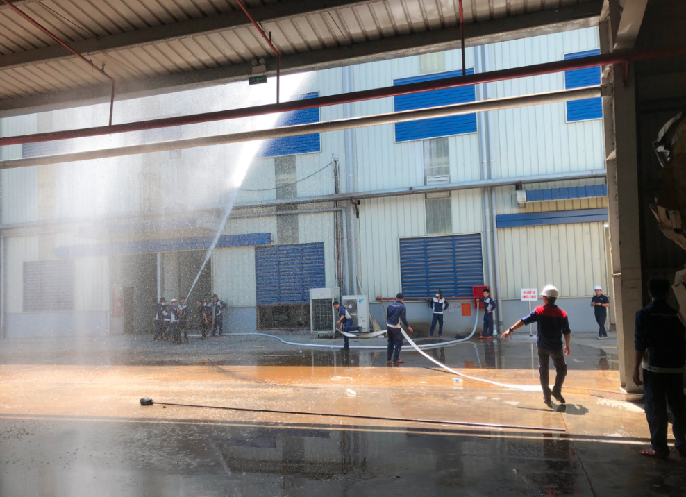 Ngay sau khi phát hiện đám cháy, song song với việc hệ thống chuông báo cháy được kích hoạt tự động và thông báo hướng dẫn di tản của ban an toàn , đội chữa cháy cơ sở đã nhanh chóng hướng dẫn các nhân viên di tản bằng cửa thoát hiểm; đồng thời sử dụng các phương tiện pccc tại chỗ như họng nước cứu hỏa, bình bọt…để tiếp cận, phong tỏa đám cháy và sơ cứu người bị nạn trong thời gian chờ lực lượng cảnh sát pccc đến trợ giúp. Phối hợp với lực lượng cơ sở triển khai đội hình, dùng vòi phun nước, phun bọt và bình xịt tổ chức chữa cháy. Đây là hoạt động có ý nghĩa quan trọng để mỗi cá nhân tiếp tục nâng cao nhận thức, nắm bắt rõ các kỹ năng, quy trình phối hợp và triển khai PCCC; khả năng cứu hộ, thoát nạn cũng như sử dụng thành thạo các thiết bị chữa cháy tại chỗ khi xảy ra sự cố cháy nổ.