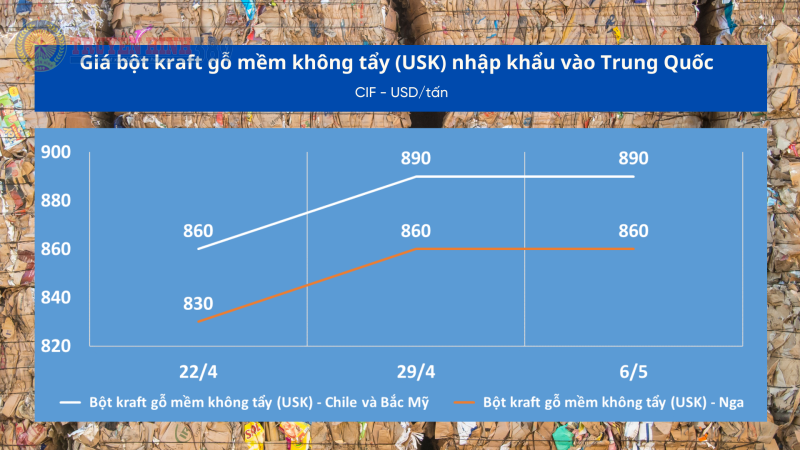 Theo đó, giá bột kraft gỗ mềm không tẩy từ Chile và Bắc Mỹ giữ nguyên mức 890 USD/tấn. Giá bột kraft gỗ mềm không tẩy của Nga là 860 USD/tấn.