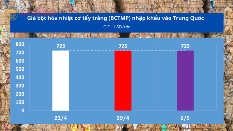 Giá bột hoá nhiệt cơ tẩy trắng giữ nguyên mức 725 USD/tấn từ nửa cuối tháng 4 tới hiện nay.