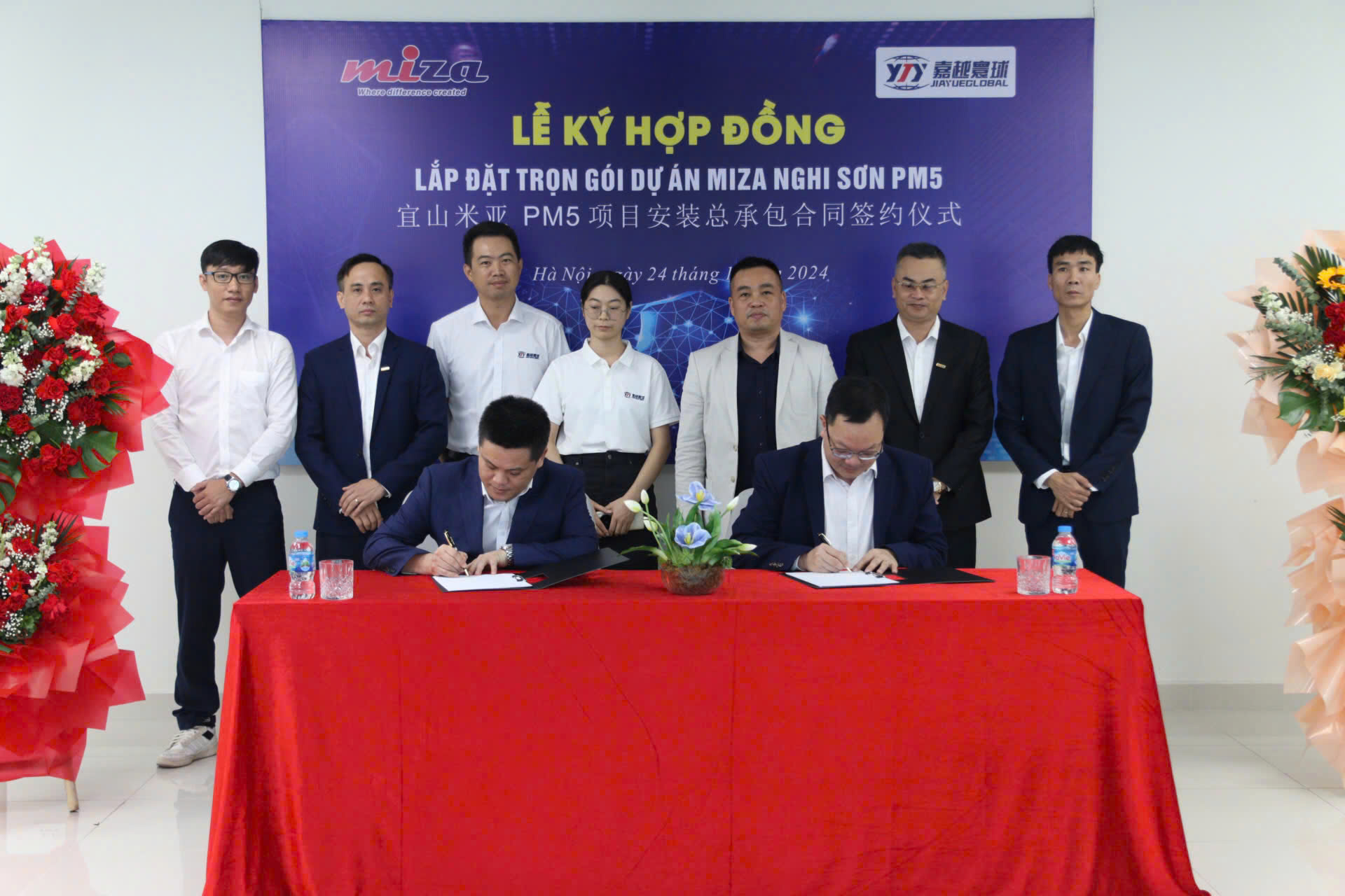 Ngày 24/11/2024, tại Trụ sở Công ty Cổ phần Miza, đã diễn ra Lễ ký kết Hợp đồng Lắp đặt trọn gói Dự án Miza Nghi Sơn PM5 giữa Công ty TNHH Miza Nghi Sơn và Công ty TNHH Một thành viên Kỹ thuật Công nghệ Yong Jia Yu Việt Nam.
