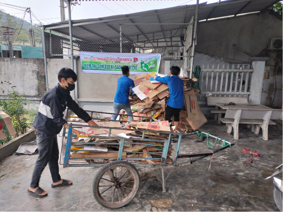 MIZA NGHI SƠN CÙNG ĐOÀN THANH NIÊN PHƯỜNG MAI LÂM, THỊ XÃ NGHI SƠN LẬP CÁC ĐIỂM THU GOM BAO BÌ TÁI CHẾ