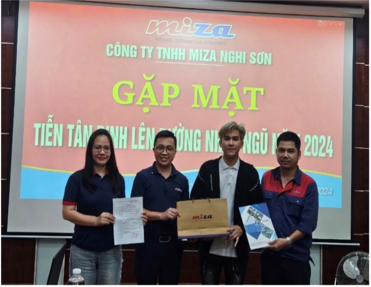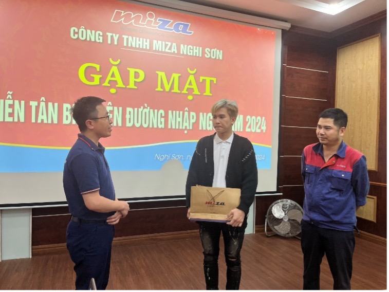 Vào ngày 22/02/2024, Công ty TNHH Miza Nghi Sơn đã tổ chức gặp mặt Anh Hoàng Văn Anlà nhân viên đang công tác bộ phận Bột của công ty chuẩn bị lên đường nhập ngũ năm 2024.