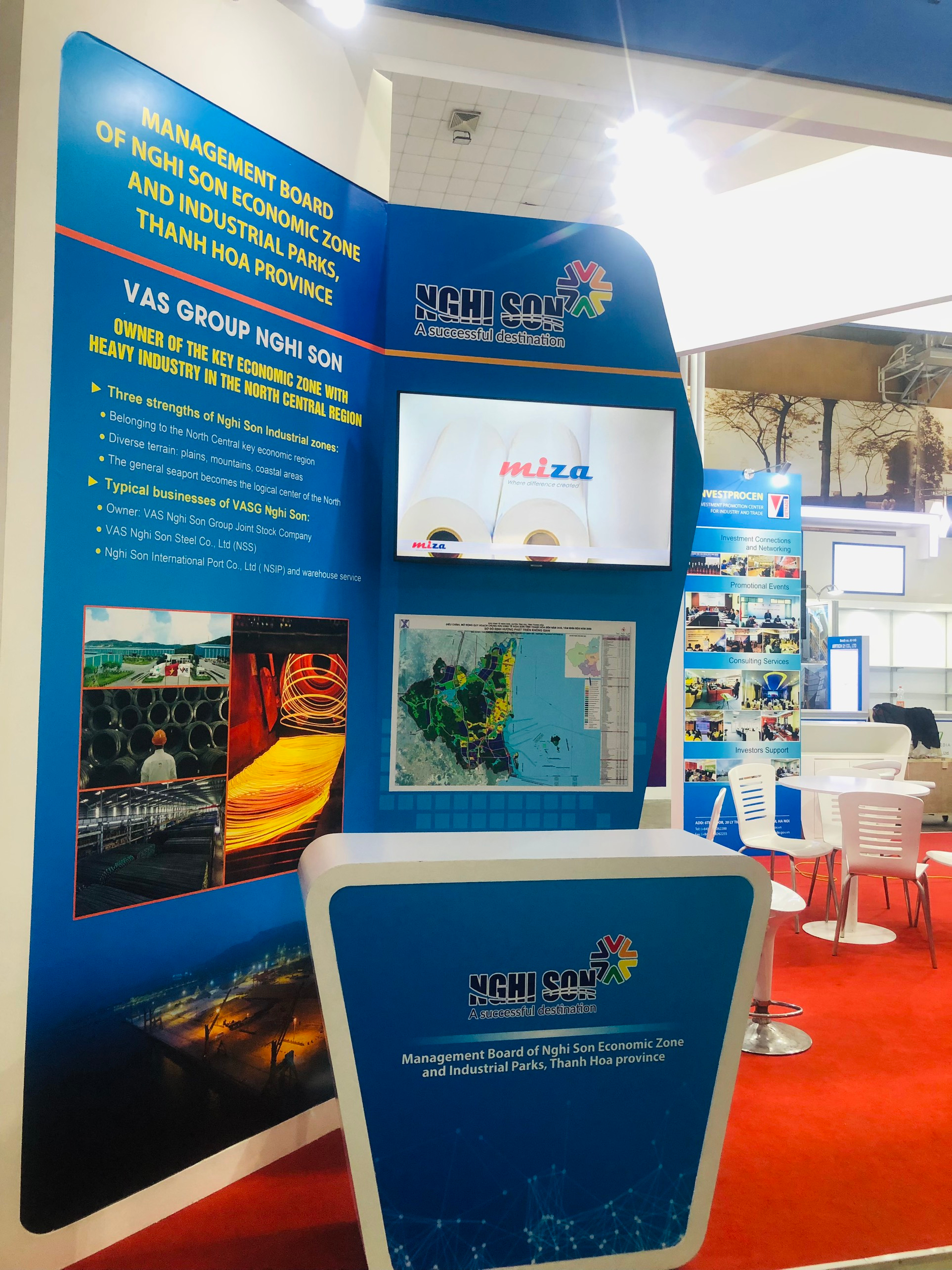 Tại chương trình lần này, Công ty TNHH Miza Nghi Sơn vinh dự là đơn vị đại diện Thanh Hóa phối hợp cùng Ban quản lý Khu Kinh tế Nghi Sơn và các Khu công nghiệp Thanh Hóa tham gia Khu gian hàng giới thiệu về các dịch vụ thế mạnh của Công ty. Các hoạt động xúc tiến đầu tư tại Khu gian hàng cũng như tại Hội chợ sẽ giúp kết nối và tạo ra nhiều giá trị kinh tế, đem đến những cơ hội thiết thực giúp các địa phương và doanh nghiệp phát triển hơn nữa trong tương lai.