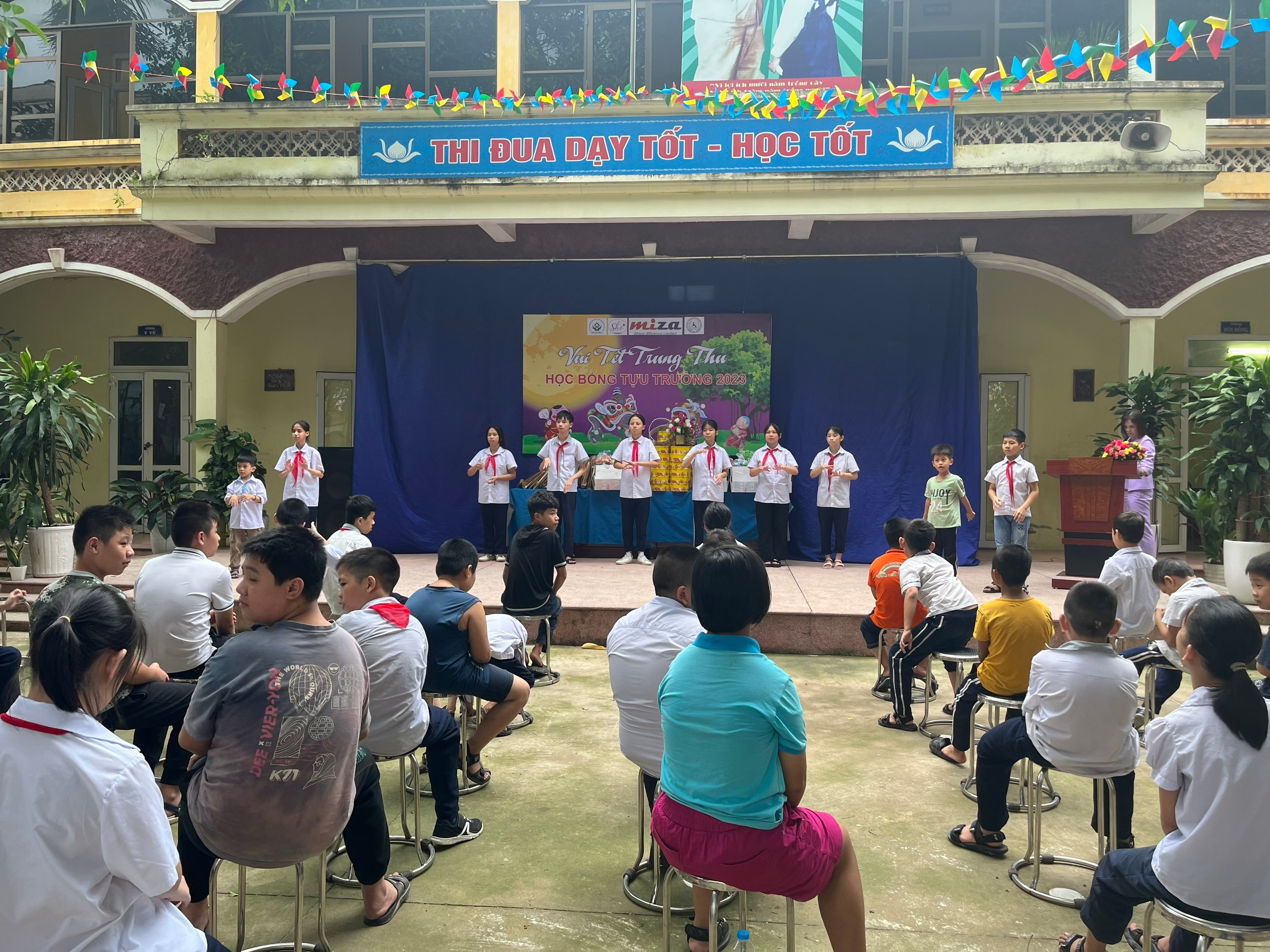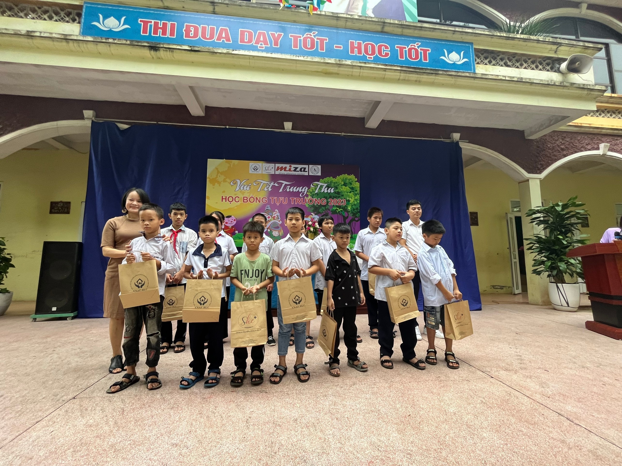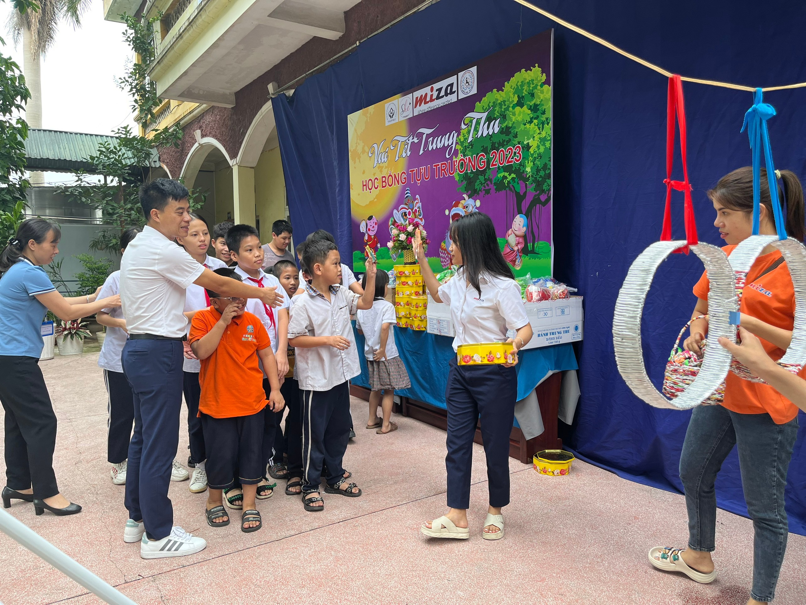 Tại Chương trình Miza đã trao tặng 34 suất học bổng cùng hàng trăm phần quà bánh kẹo để tổ chức trò chơi vui Trung Thu cho các em học sinh như: tô màu trên giấy, tô màu trên gỗ và đặc biệt là hoạt động ném còn dân gian được các em hưởng ứng rất nhiệt tình, 100% các em học sinh đã tham gia trò chơi này.